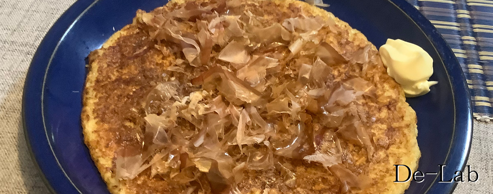 This dish is a simple homemade recipe made by mixing grated Japanese yam with egg and shirasu (tiny boiled whitebait) and pan-frying the batter.