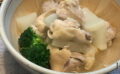 鍋にお湯を沸かし、イワシのつみれを適当な大きさに丸めて3分ほど茹で取り出しておく